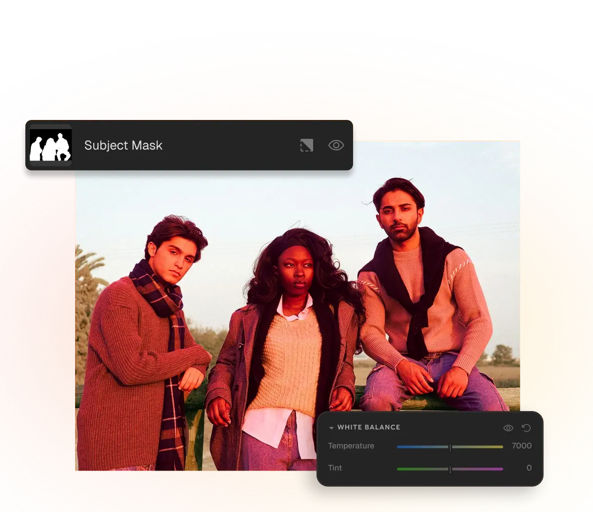 Aftershoot detects your subjects and masks them automatically during your editing session. Every photo in your album gets a precise subject mask, without you having to do anything manually.