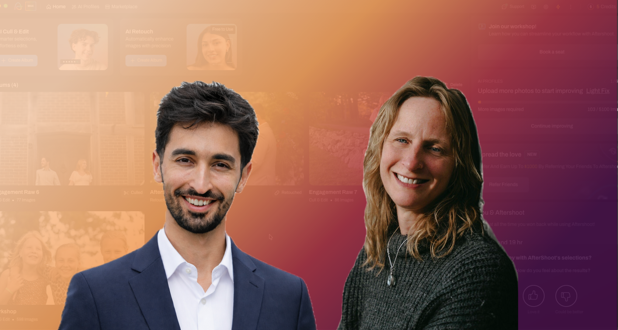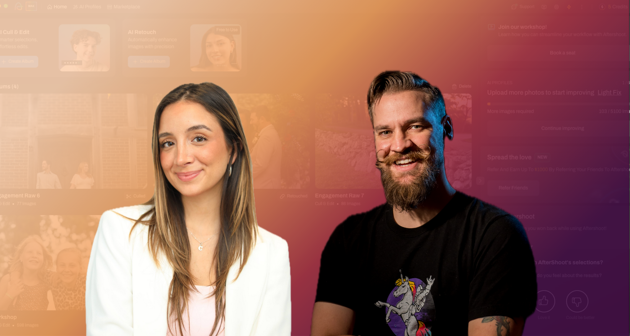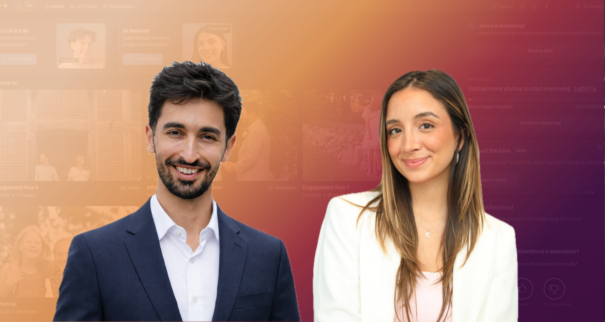 Learn the essentials to streamline your workflow with Aftershoot! Walk through how to import your first album, use AI to cull, edit and retouch in record time and export your best shots for your clients.