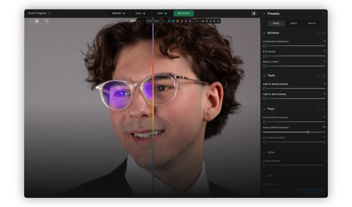 No more glasses glare ruining picture day – remove it instantly. No more reshoots or tedious manual edits.