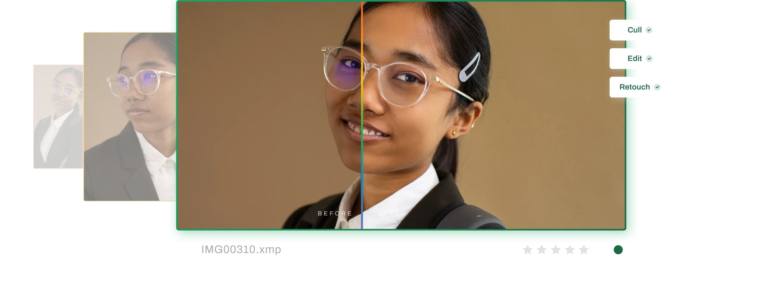 No more glasses glare ruining picture day – remove it instantly. No more reshoots or tedious manual edits.